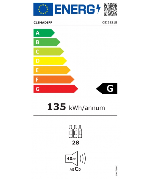 Instalação livre ou encastre - Capacidade de 20 garrafas - Temp. ajustável 5° a 18°C - 5 prateleiras de madeira extraíveis - Porta Inox reversível, fechadura, vidro triplo anti-UV - Umidade constante ≥ 65 % - Visor Digital do controlo da temperatura, luz LED - Frio por compressor sobre borracha anti-vibração - Sistema de ventilação interna (frio ventilado) - Baixo nível de ruído (38 dB) - 90 W de potência (98 kWh/ano) – Classe F (ex-classe A+) - Slim - medidas 29,5 x 57,5 x 80 cm (LxPxA) - 4 pés ajustáveis