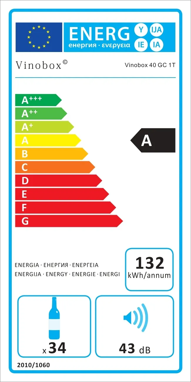 Instalação livre ou encastre – Capacidade de 34 garrafas – Temp. ajustável 5° a 18°C – Umidade constante ≥ 65 % – 5 prateleiras de madeira extraíveis – Porta reversível, fechadura, vidro triplo anti-UV – Visor Digital do controlo da temperatura, luz LED – Frio por compressor sobre borracha anti-vibração – Sistema de ventilação interna (frio ventilado) – Baixo nível de ruído (41 dB) – 90 W de potência (135 kWh/ano) – Classe G (ex-classe A) – Medidas 45 x 59,5 x 80 cm (LxPxA) – 4 pés ajustáveis